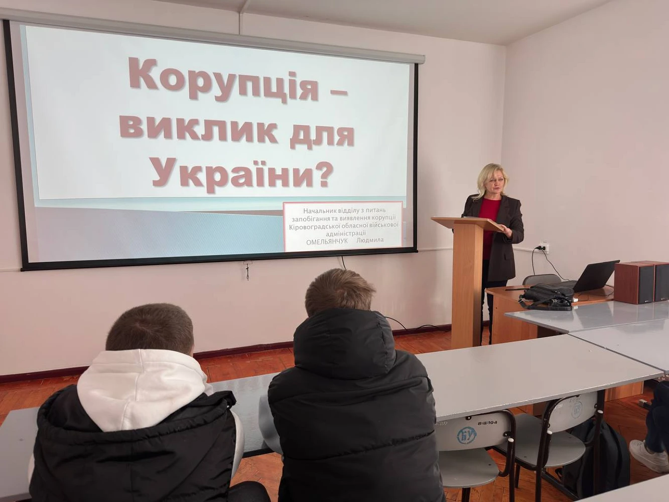 У Центральноукраїнському національному технічному університеті відбулася зустріч студентів з Омельянчук Людмилою Миколаївною, начальником відділу з питань запобігання та виявлення корупції Кіровоградської обласної військової адміністрації.