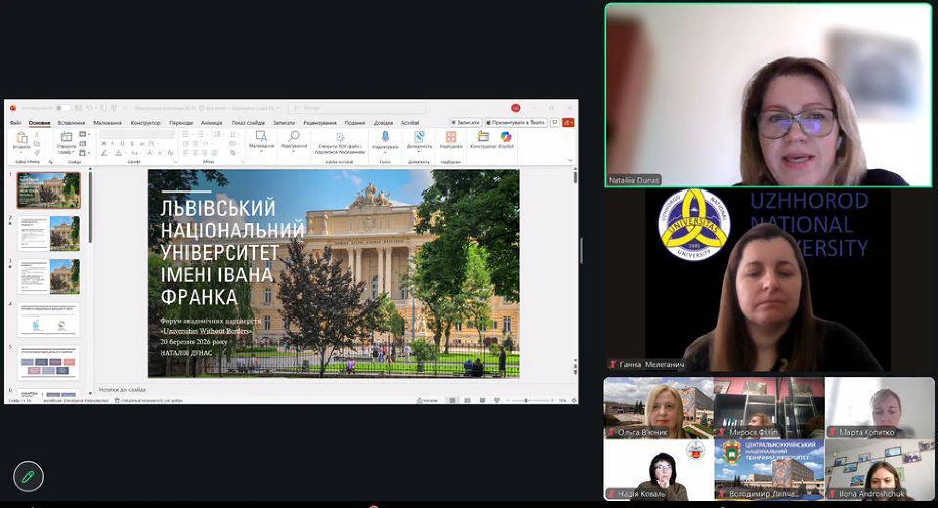 Ольга В’ЮНИК, заступник декана ЕФ з наукової та міжнародної діяльності, к.е.н., проф. кафедри ЕМКД, виступаючи координатором форуму академічних партнерств та автором мікропроєкту «Синергія внутрішнього та зовнішнього потенціалу університету у сфері інтернаціоналізації» (за результатами роботи VI Зимової школи «Інтернаціоналізація вищої освіти» від ВГО «Інноваційний університет»), наголосила на зацікавленості у подальшій співпраці у міжнародному вимірі, зокрема, щодо програми «INTERREG».