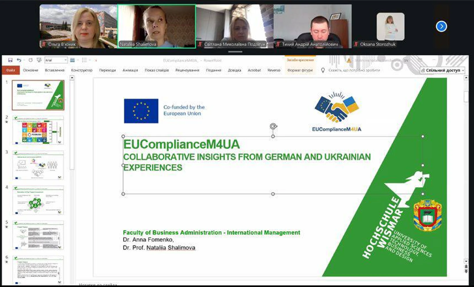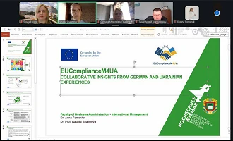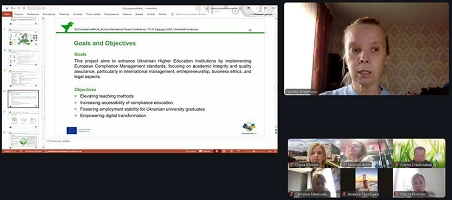 Презентуючи поточні результати реалізації міжнародного проєкту «Впровадження європейського підходу комплаєнс-менеджменту у вищій освіті України» (EUComplianceM4UA), декан ЕФ ЦНТУ Наталія ШАЛІМОВА поінформувала учасників форуму про шлях, пройдений від появи ідеї – до перемоги у конкурсі, та подальші дії щодо виконання етапів і завдань проєкту. Спікер відзначила наявну мережу учасників проєкту з різних країн світу (Німеччини, Польщі, Чехії, Португалії, України), наголосила на важливій ролі проєкту для ЗВО, бізнесу і суспільства, зазначила цілі, завдання та етапи проєкту. Значну зацікавленість у присутніх викликали досвід підготовки інтерактивного двомовного FutureBook з комплаєнс-менеджменту – українською та англійською мовами (https://vscht.futurebooks.cz/kategorie/25-eucompliancem4ua), відкриття подкаст-студії, функціонування відкритого Ютуб-каналу (https://www.youtube.com/@eucompliancem4ua).